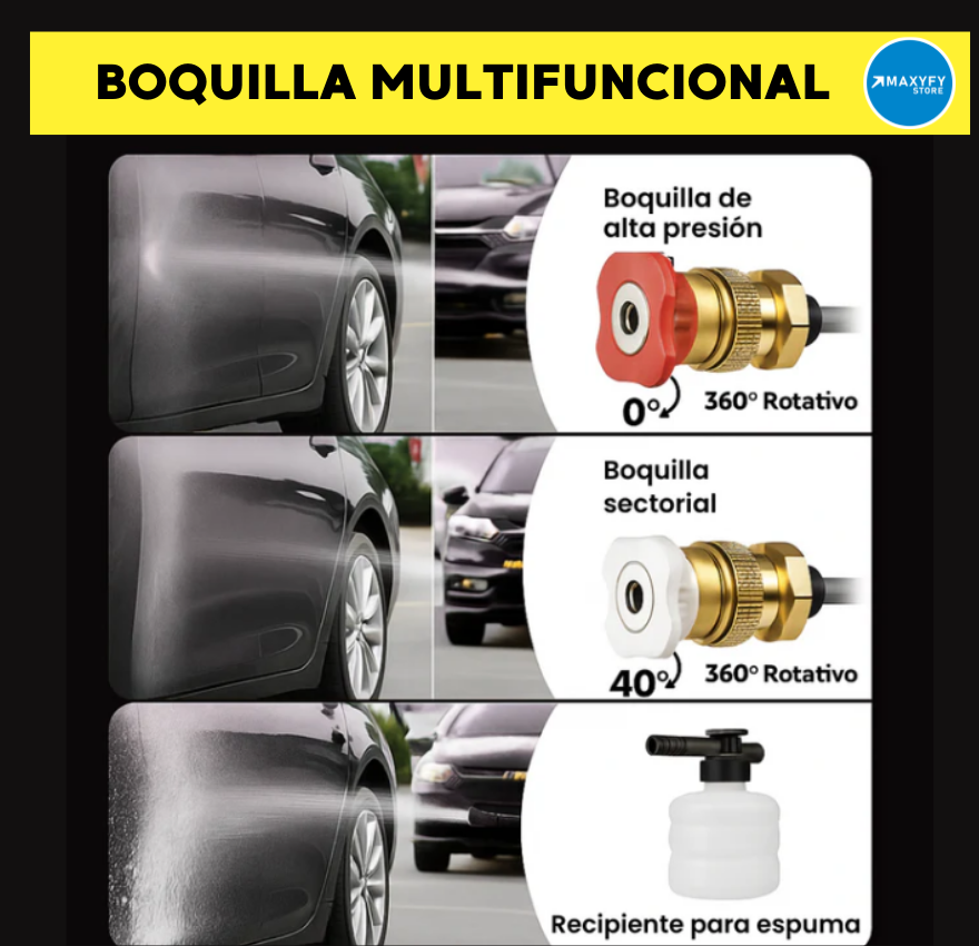 👉 ¡Todo con solo un recipiente con agua y sus boquillas adaptables!